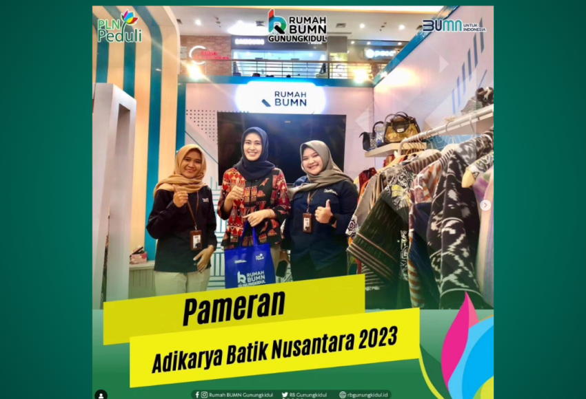Rumah BUMN Gunungkidul menjadi salah satu pengisi tenant batik di acara tersebut dengan membawa produk-produk unggulan dari 8 UMKM binaan RBGunungkidul diantaranya produk fashion dan kerajianan bernuansa batik.