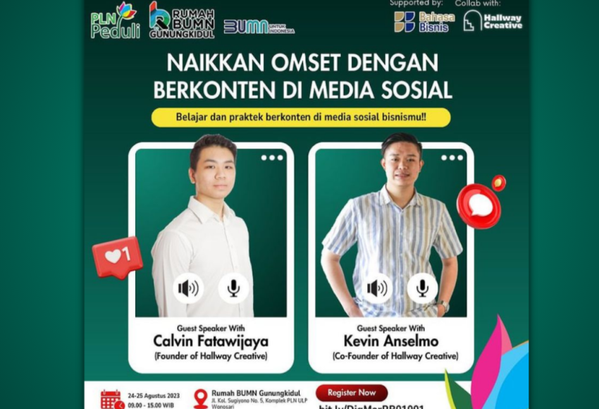 Workshop Digital Marketing yang diselenggarakan oleh Rumah BUMN Gunungkidul telah terlaksana dengan lancar. Dengan menggandeng Hallway Creative kegiatan berjalan selama dua hari yaitu Kamis-Jumat, 24-25 Agustus 2023 mulai pukul 09.00 – 15.00 WIB di Class Room Rumah BUMN Gunungkidul. Tercatat ada 15 peserta yang hadir mengikuti workshop. “Naikkan Omset Dengan Berkonten […]